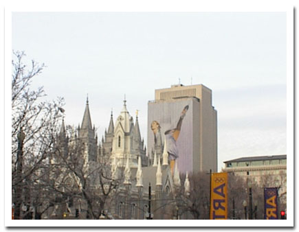 2002 Winter Olympics Salt Lake City, Utah Downtown Salt Lake Many of the taller buildings in the center of town were decorated with these larger than life banners of various Olympic athletes.