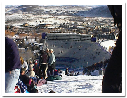 2002 Winter Olympics Salt Lake City, Utah Women's Giant Slalom This is the view of the grand stand as people are gathering for the event.
