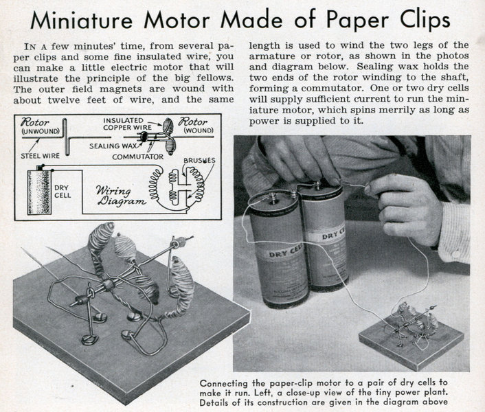 Miniature Motor Made of Paper Clips (Jul, 1940)