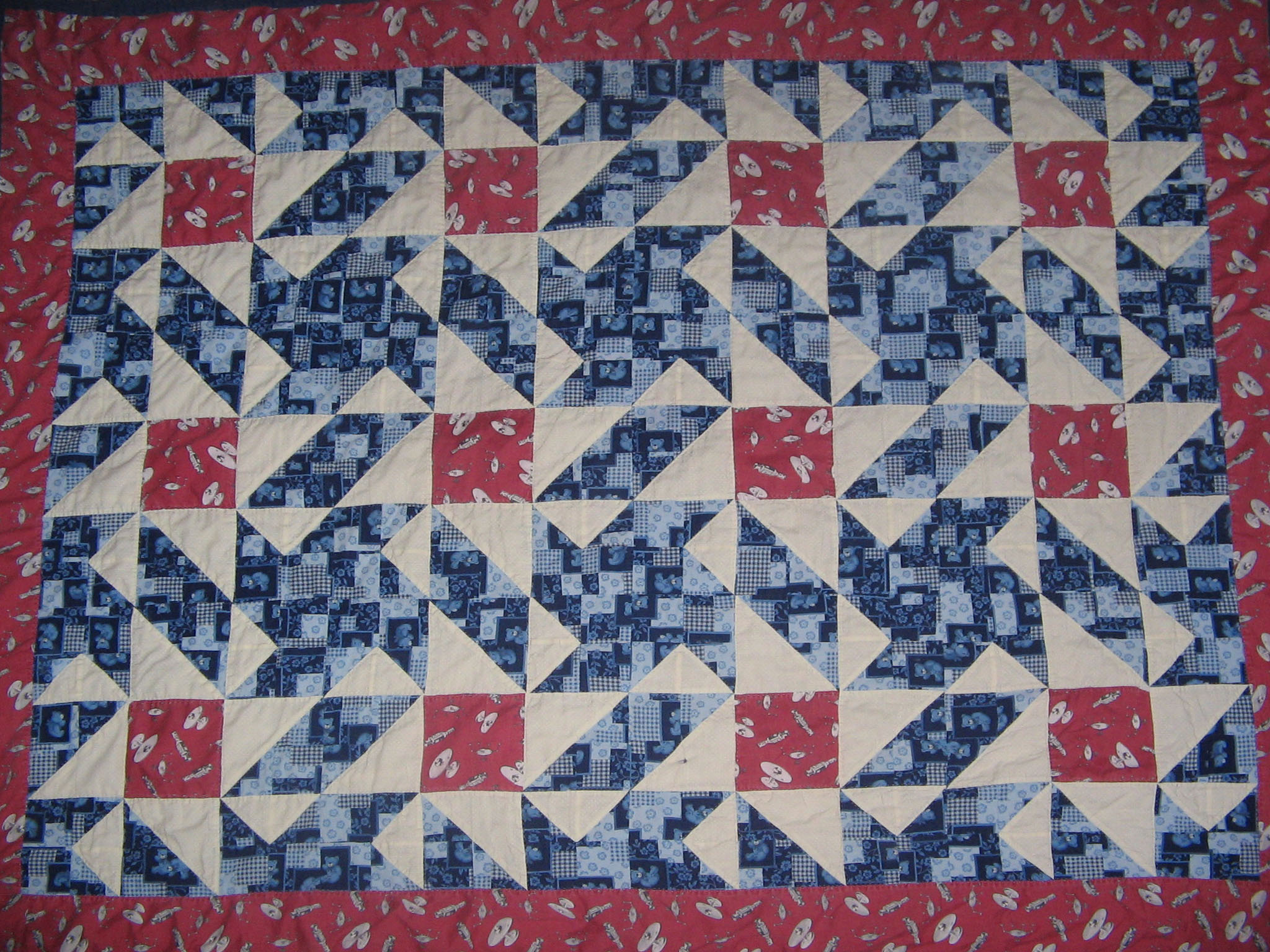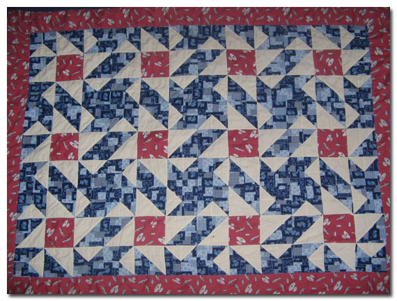 I made a quilt for each of my children for Christmas one year. They got to pick out the colors and the design. I used quilting design software to make up the design and give me the dimensions. Then I machine pieced and hand quilted each one. Full size version