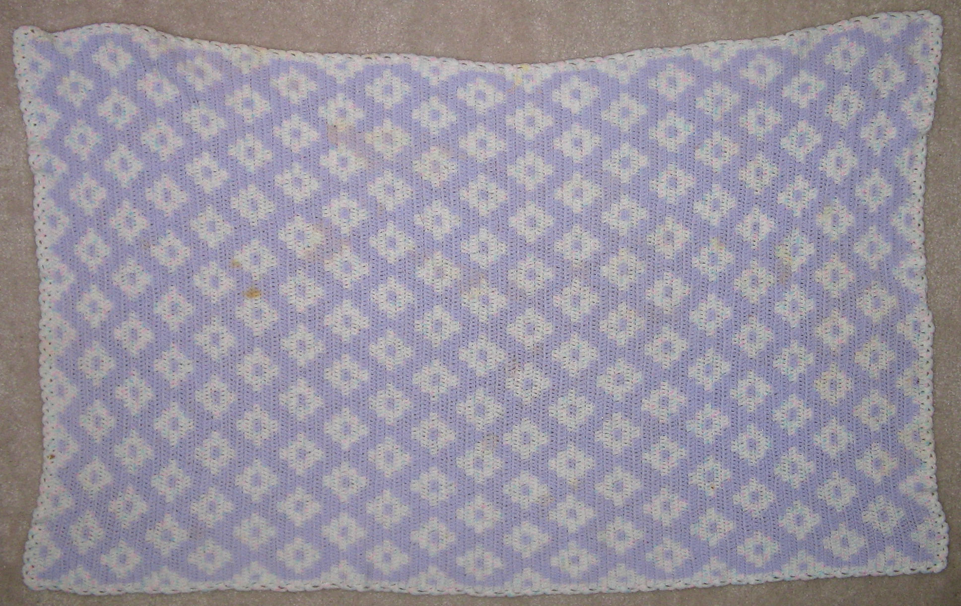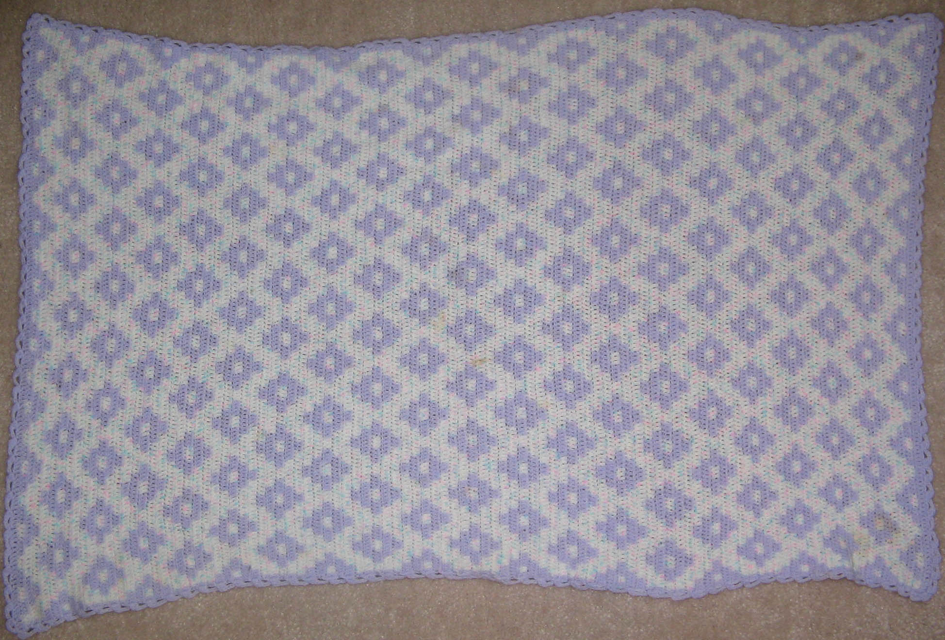 I crocheted an afghan for each of my twins while I was awaiting their arrival. They are inverse of each other. Full size version no. 1 Full size version no. 2